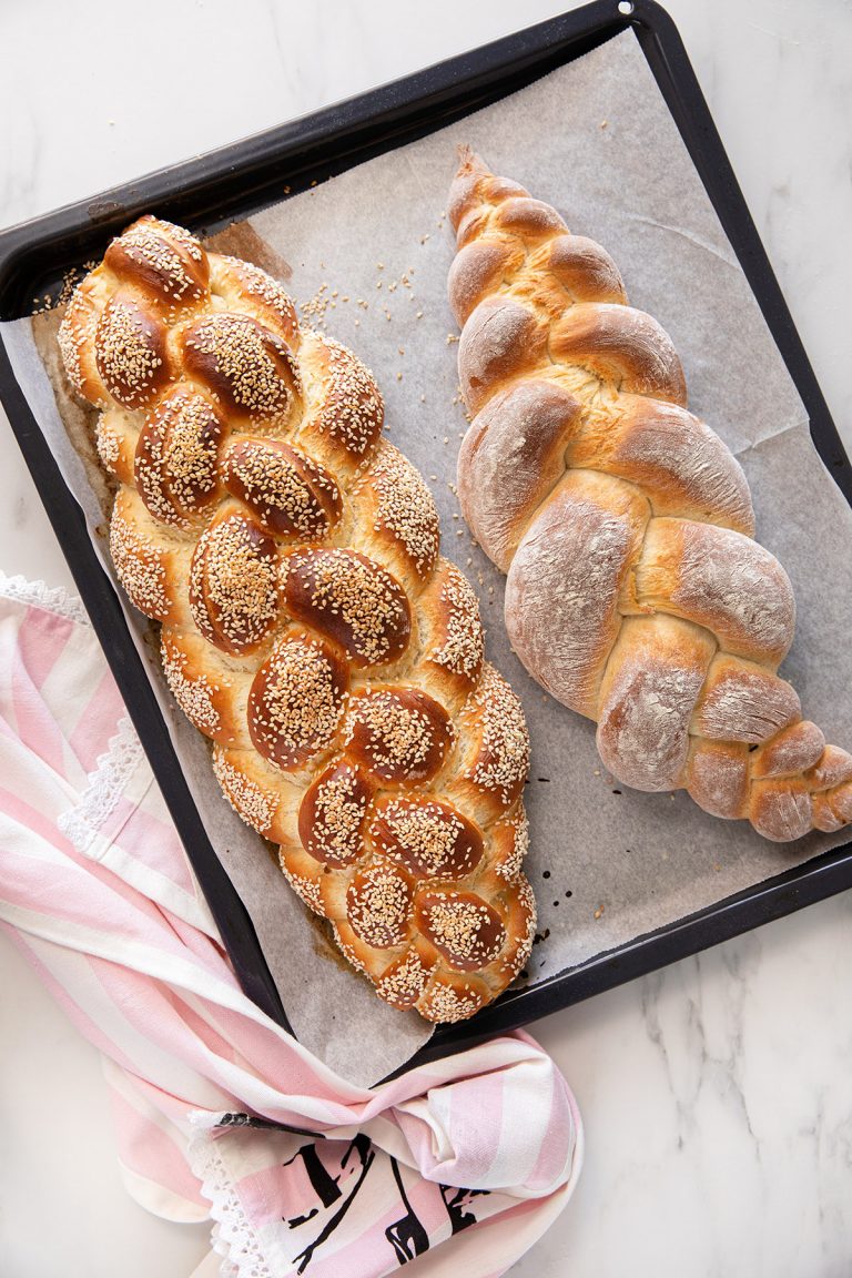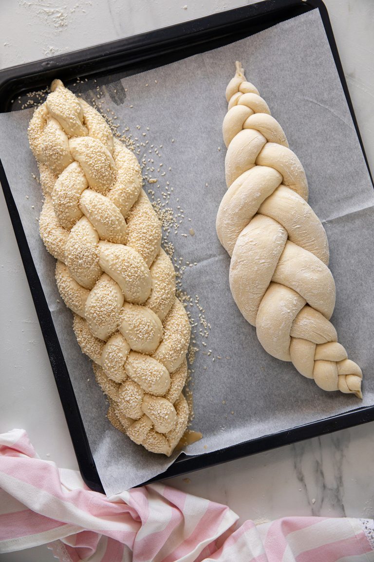לפזר שומשום. להתפיח את החלות הקלועות לעוד שעה לפחות.