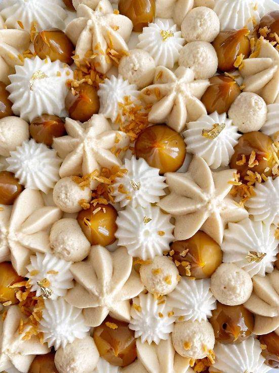 בתמונה פזרתי מעל קוקס קלוי ודפי זהב אכילים.