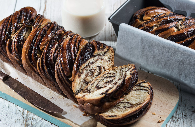 מחלקים את הבצק ל6 מרדדים מרדדים לאורך שהיה צר וארוך מורחים שוקולד ומגלגלים אחרי שנוצר גליליה שמנה מגלגלים עוד שהיה בגודל של התבנית.